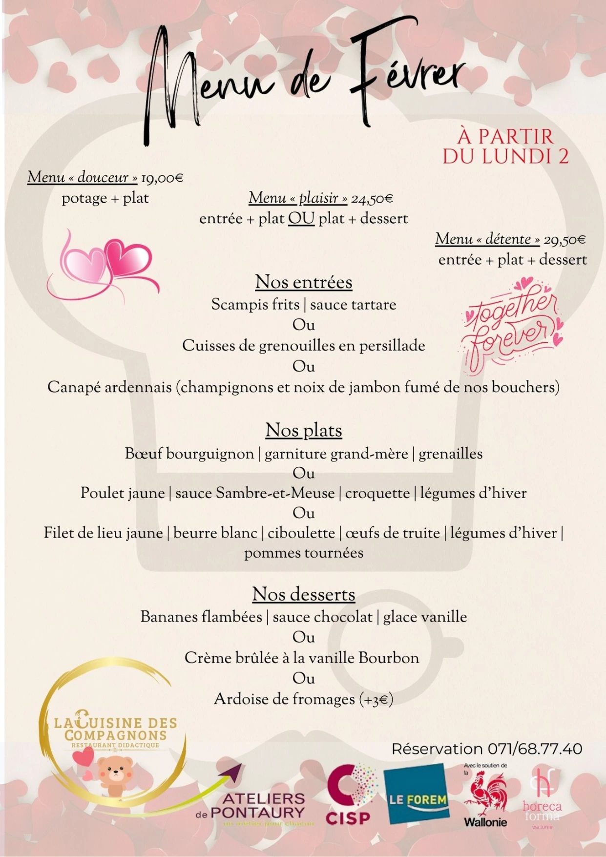 Venez déguster notre menu févier